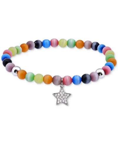 Cubic Zirconia & Multicolor Catseye Star Dangle Stretch Bracelet In Sterling Silver, Created For Mac