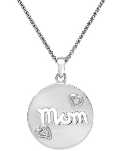 Cubic Zirconia Mom Heart Disc Pendant Necklace In Sterling Silver, 16" + 2" Extender, Created For Ma