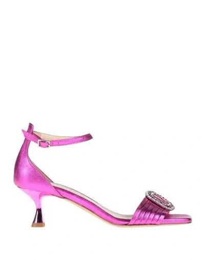Woman Sandals Fuchsia Size 8 Leather In Pink