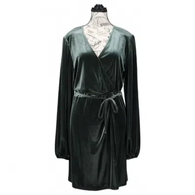Women's Velvet Mini Wrap Holiday Party Dress In Green