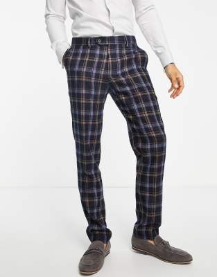 Slim Fit Checked Herringbone Wool Blend Suit Pants-blues