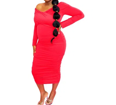 Embrace Ruched Midi Dress In Red