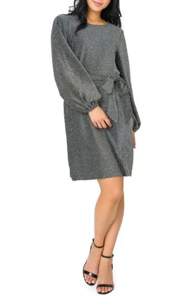 Print Tie Waist Long Sleeve Dress In Delicate Sage Floral