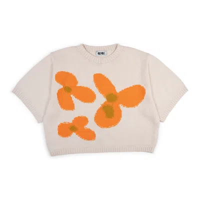 Women's Neutrals Flower Cotton Knit T-shirt In Natural In Beige/orange/yellow