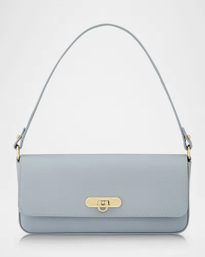 Audrey Embossed Leather Shoulder Bag In Blue