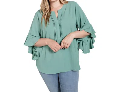 Gloria Ruffle Bell Sleeve Top In Mint In Green
