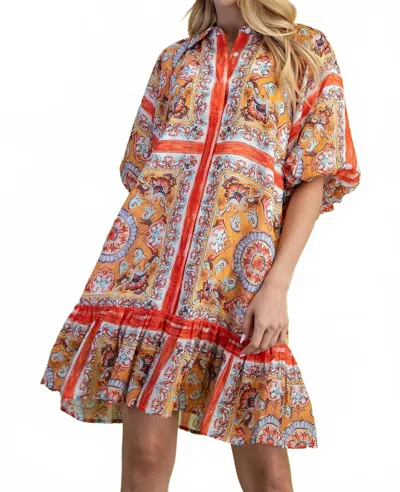 Smocked Babydoll Dress In Coral Multi In Orange