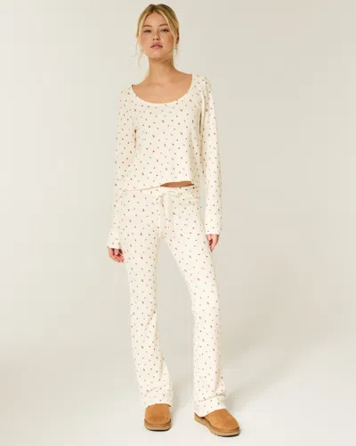 Heart Pointelle Straight Sweater-knit Pants In White