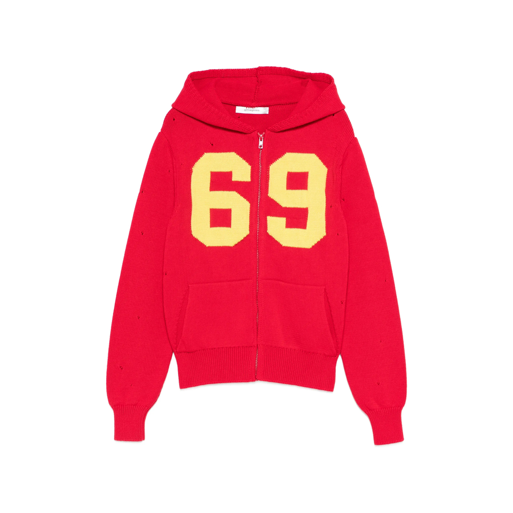 Number Hooded Cardigan In Red