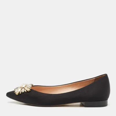 Black Satin Crystal Embellished Ballet Flats In Multi