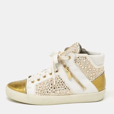 Gold Leather Crystal Embellished Cross Ankle Strap Sandals