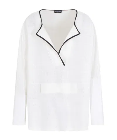Giorgio Armani is a high-end label specializing in men's and women's ready-to-wear, accessories, glasses, cosmetics, and perfumes. It is available only in Giorgio Armani boutiques, specialty clothiers and select high-end department stores. The logo is a curved "G" completing a curved "A", forming a circle.