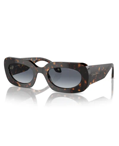 Giorgio Armani is a high-end label specializing in men's and women's ready-to-wear, accessories, glasses, cosmetics, and perfumes. It is available only in Giorgio Armani boutiques, specialty clothiers and select high-end department stores. The logo is a curved "G" completing a curved "A", forming a circle.