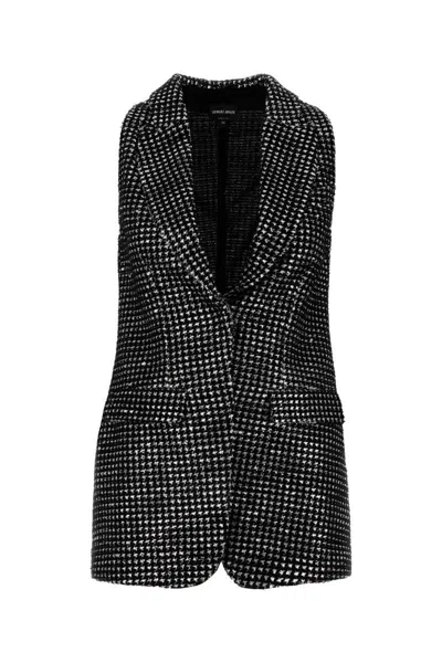 Giorgio Armani is a high-end label specializing in men's and women's ready-to-wear, accessories, glasses, cosmetics, and perfumes. It is available only in Giorgio Armani boutiques, specialty clothiers and select high-end department stores. The logo is a curved "G" completing a curved "A", forming a circle.