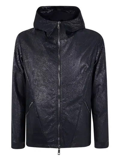 Leather Hooded Jacket In Black
