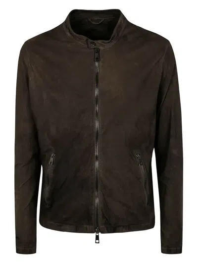 Washed Leather Jacket In Brown