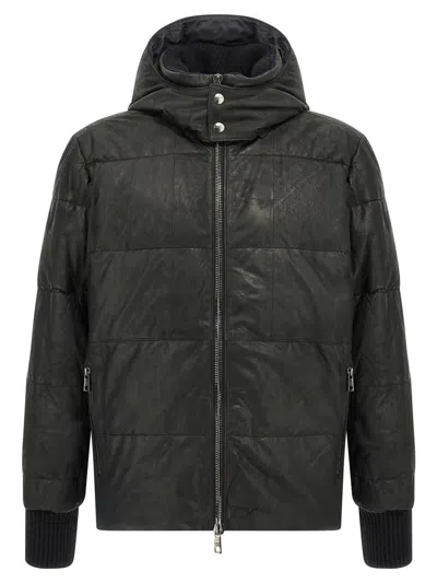 Leather Down Jacket With Hood In Black