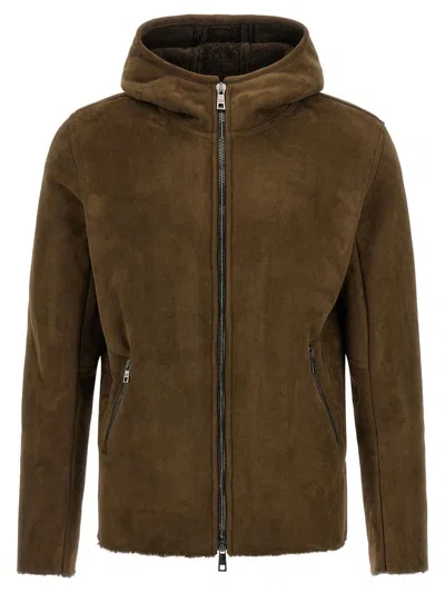 Shearling Hooded Jacket In Green