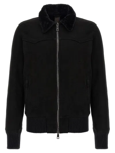 Sheepskin Bomber Jacket In Black