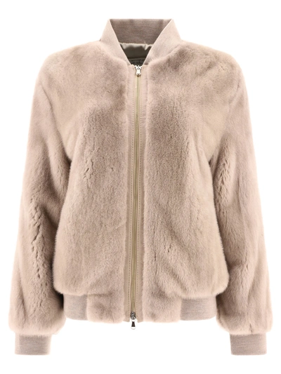 Deluxe Mink Fur Bomber Jacket In Neutral