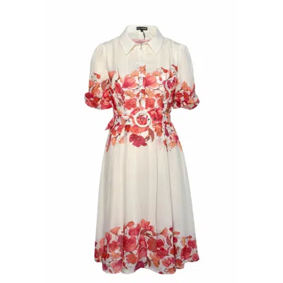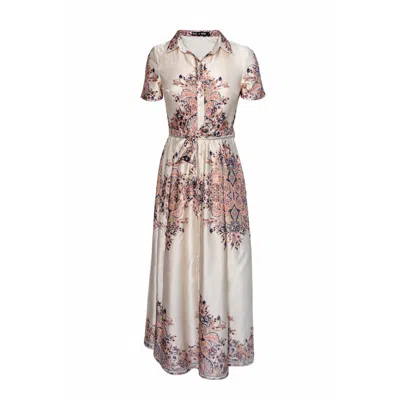 Women's Holland Cream And Pink Floral Collar Midi Dress