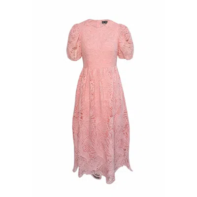 Women's Marguerite Round Neck Puff Sleeve Midi Dress Pink Lace