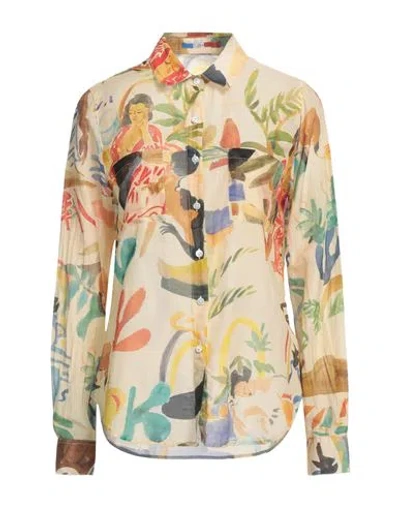 Woman Shirt Cream Size L Cotton, Silk In White