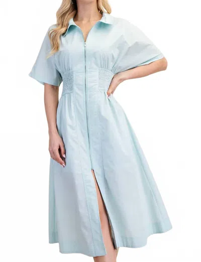 Elsie Collar Neck Waist Pleated Mini Dress In Light Blue