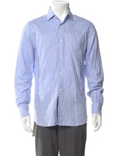 Pre-owned Plaid Print Long Sleeve Dress Shirt In Blue