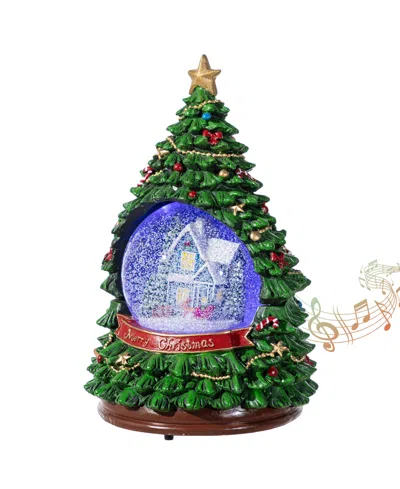 100mm Lighted Resin Christmas Musical Snowflakes Christmas Tree Water Globe In Multi