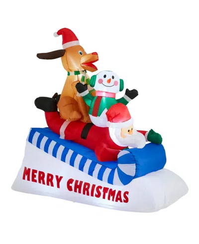 6" Lighted Inflatable Skiing Santa, Snowman And Dog Decor In Multi