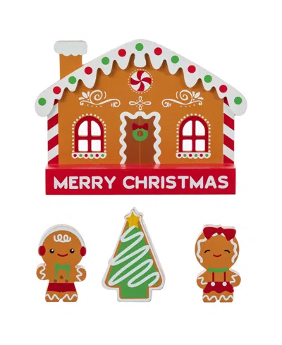 Wooden Christmas Gingerbread House Table Decor, Set Of 4 In Multi
