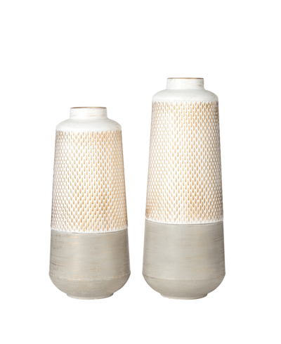 Oversized Faux Ceramic Textured Tall Pot Planter, Set Of 2 In Blue