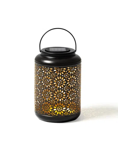 8.75" H Metal Cutout Flower Solar Powered Outdoor Hanging Lantern With Led Light In Black