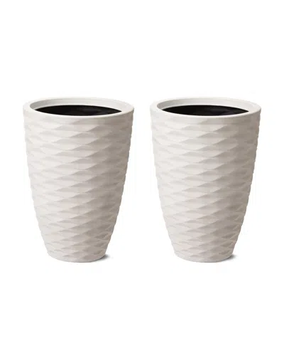 Environmental Oversized Faux Porcelain Tall Round Diamond Pattern Planter, Set Of 3 In White