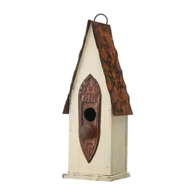 10.25in Distressed Solid Wood Bird House In White