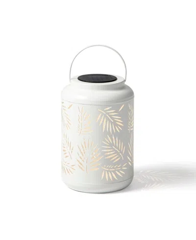 8.75" H Metal Cutout Leaf Solar Powered Outdoor Hanging Lantern With Led Light In White