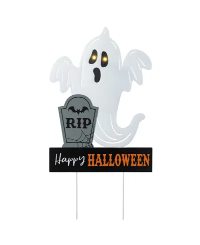 32.25" Lighted Halloween Metal Ghost Tombstone Yard Stake With Timer