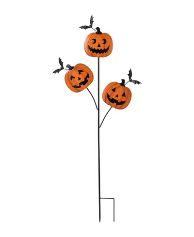 39.5" Halloween Metal Triple Pumpkin With Spring Bats Yard Stake