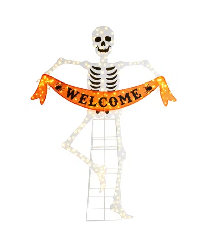 86.25" Lighted Halloween Skeleton Outdoor Decor With Warm White Led Lights
