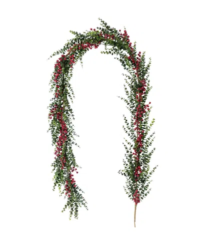 21 H Christmas Pine Needle Berry Ribbon Centerpiece In Multi