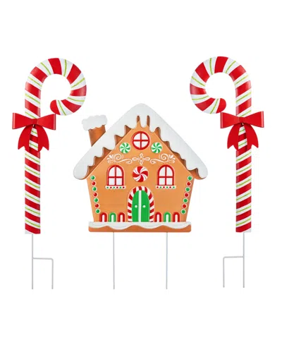 32"h Set Of 3 Christmas Metal Snowman And Happy Holidays Yard Stake In Multi