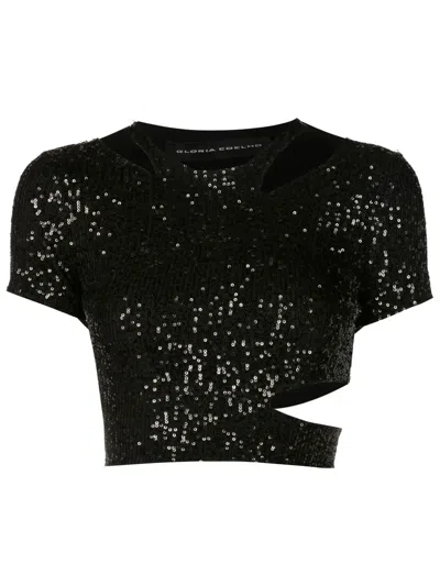 Sequin Short-sleeve Top In Black