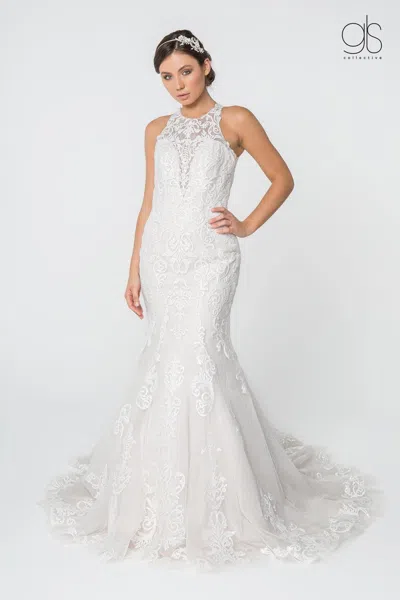 Gl3665 Long Formal Beaded Sequin Fitted Evening Dress In Neutral
