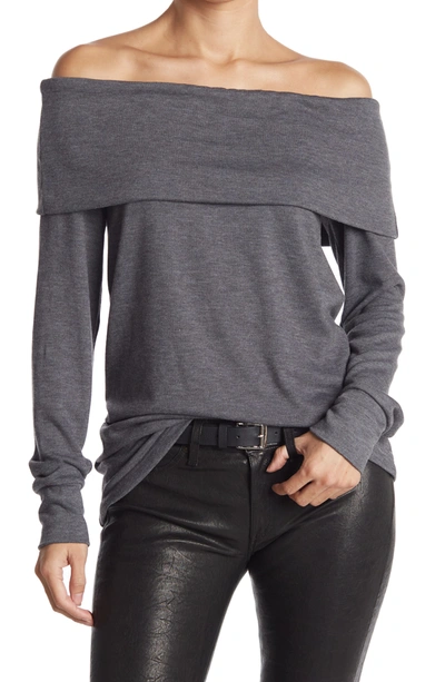 Foldover Off-the-shoulder Tunic Sweater In Charcoal