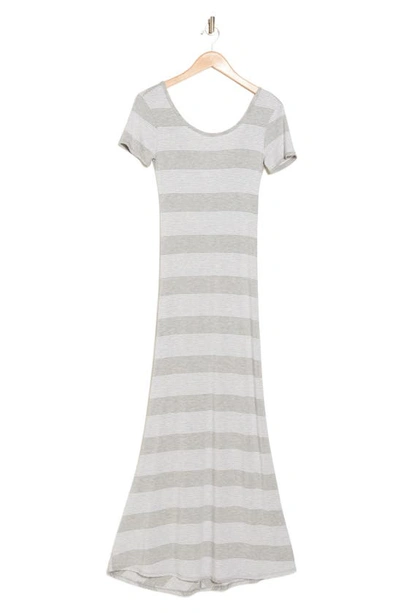 Stripe Short Sleeve Rib Maxi Dress In Heather Grey