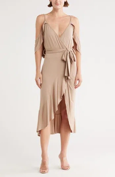 Cold Shoulder Wrap Dress In Brown
