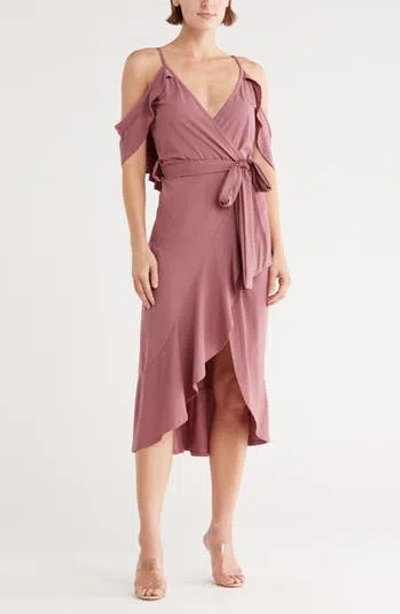 Cold Shoulder Wrap Dress In Purple