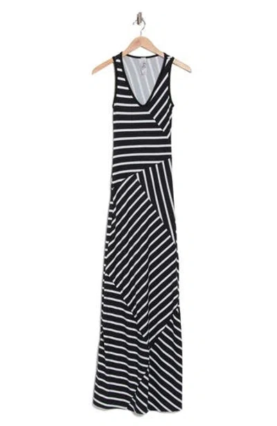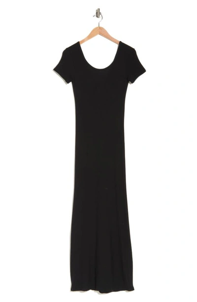 Long Sleeve Knit Maxi Dress In Navy Rib