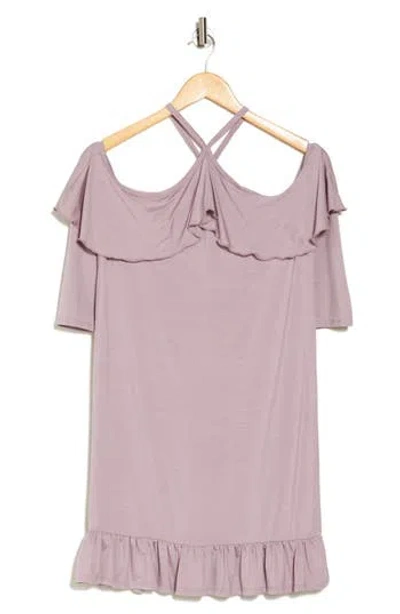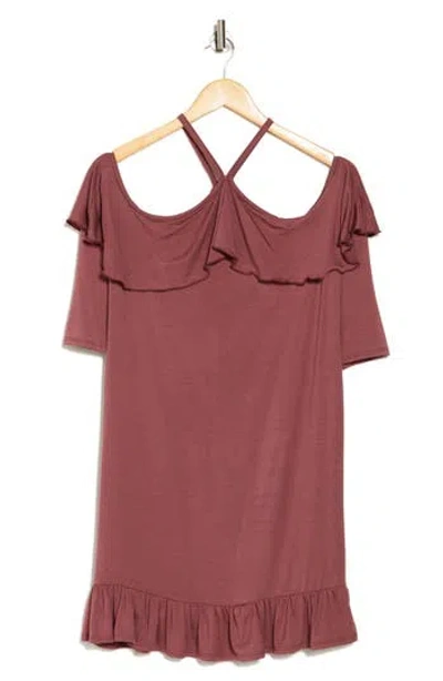 Ruffled Cold Shoulder Dress In Crushed Berry